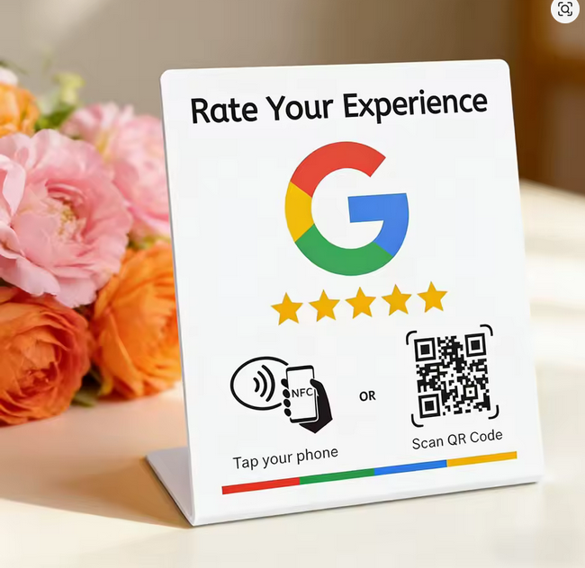 Ενισχύστε τις αξιολογήσεις της επιχείρησής σας με αυτή την επιτραπέζια βάση Google Reviews με NFC και QR Code. Ο πελάτης μπορεί απλώς να ακουμπήσει το κινητό του ή να σαρώσει τον κωδικό για να μεταφερθεί άμεσα στη σελίδα αξιολόγησης της επιχείρησής σας. Ιδανική λύση για φυσικά καταστήματα, καφέ, εστιατόρια, κομμωτήρια, ιατρεία, γραφεία και κάθε επιχείρηση που θέλει περισσότερα θετικά reviews εύκολα και γρήγορα.