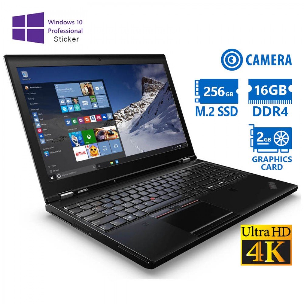 Lenovo ThinkPad P50 15.6″ UHD 4K Refurbished, i7-6820HQ, 16GB, 256GB M.2, Quadro M1000M 2GB, Windows 11 Pro