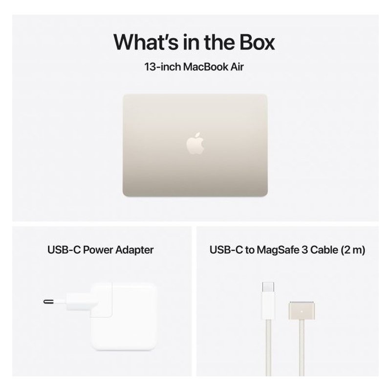 Apple MacbookApple MacBook Air 13.6″ 256GB/16GB | M4 10-core CPU/8-core GPU | GR Keyb | Starlight